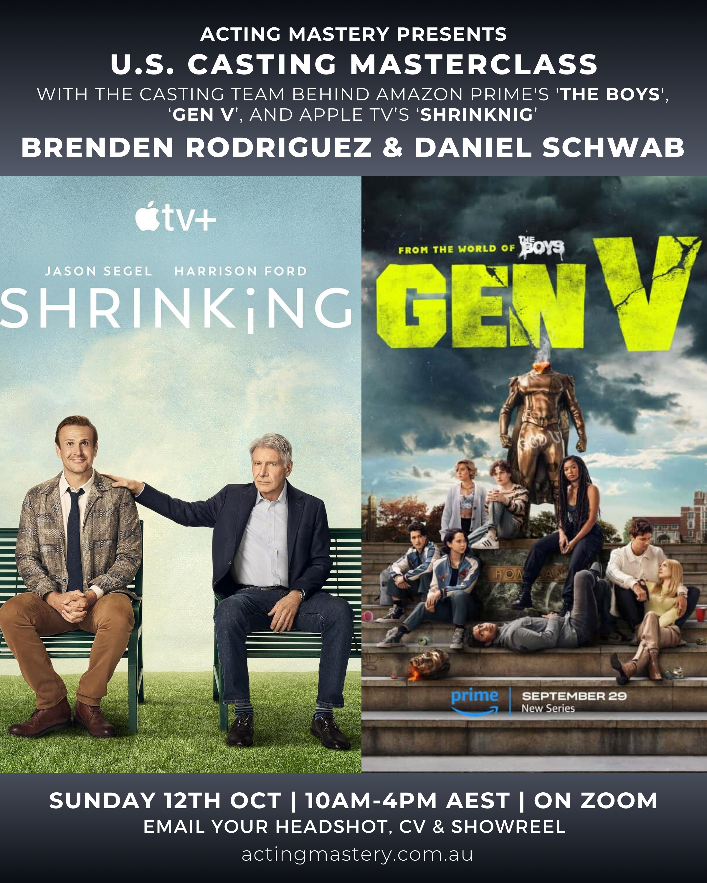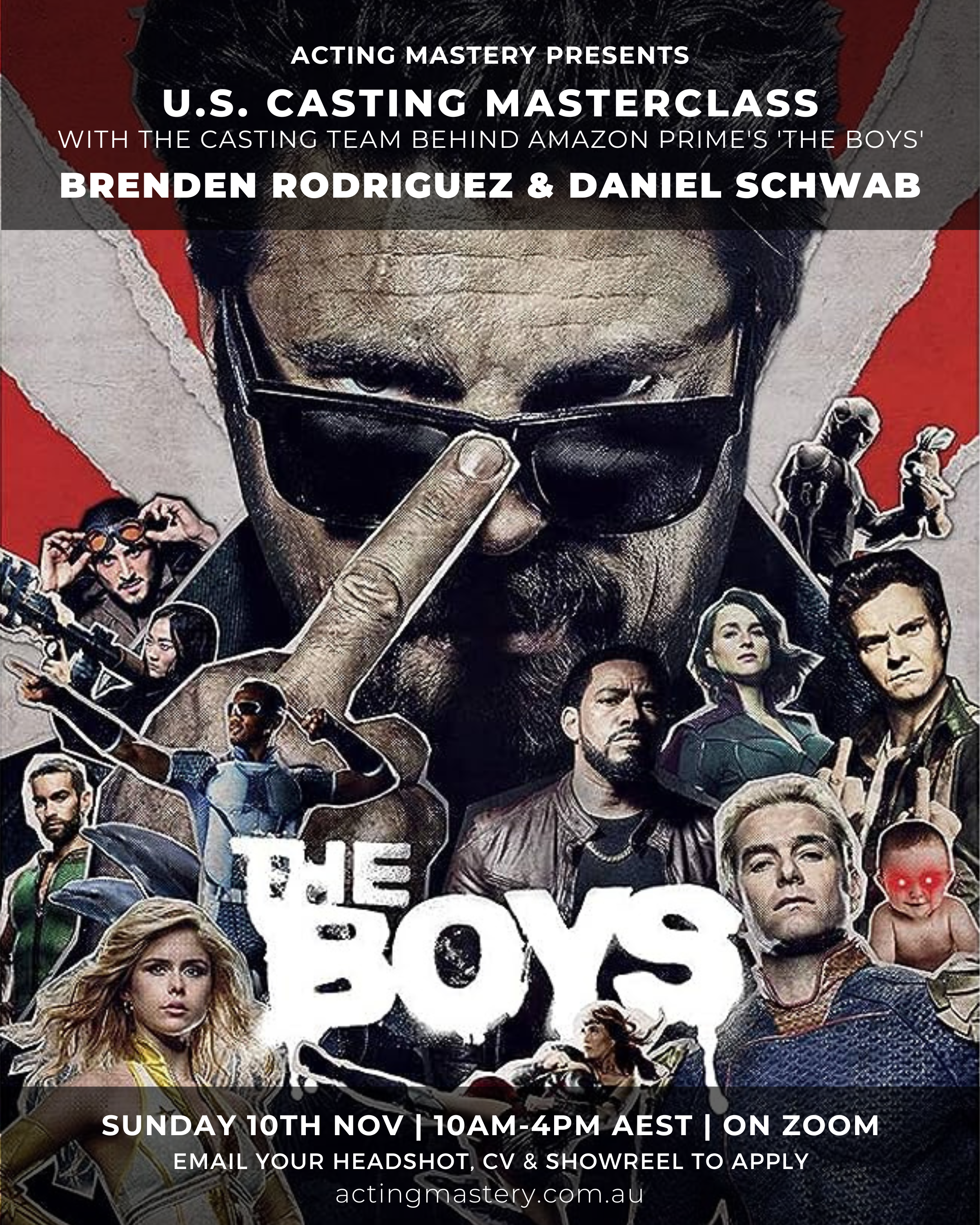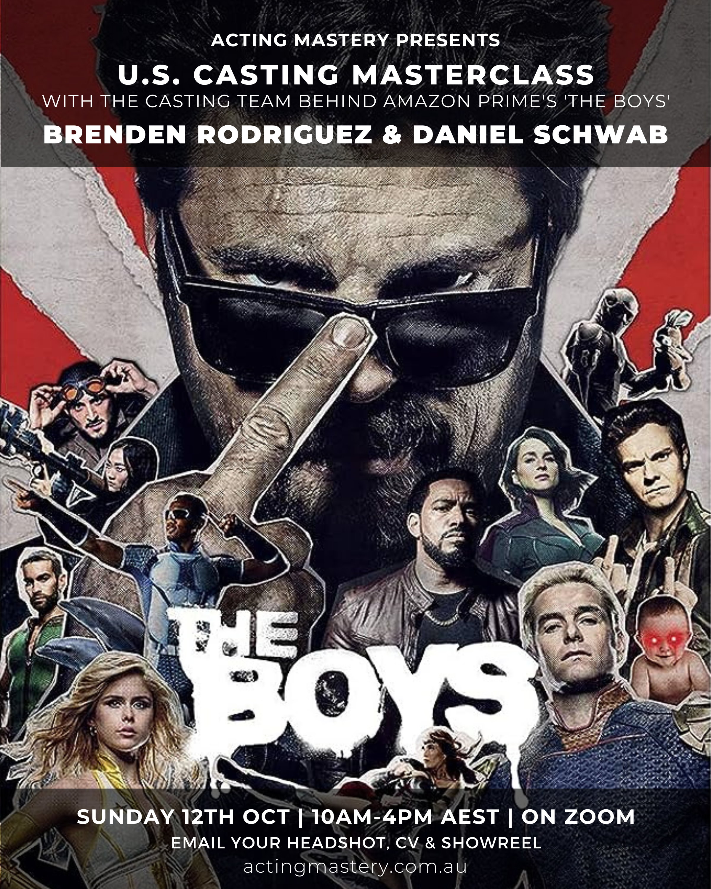 Acting Mastery is incredibly excited to host an exclusive workshop with the U.S. Casting team behind Amazon Prime’s ‘The Boys’, Brenden Rodriguez and Daniel Schwab!